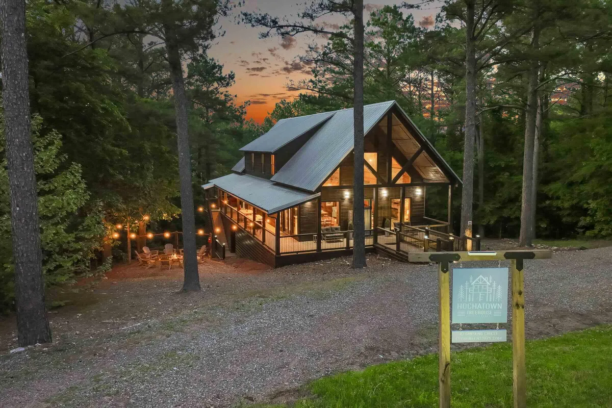 With stunning surroundings and a beautiful wrap-around outdoor deck, it's the perfect escape in the mountains of Broken Bow, Oklahoma!